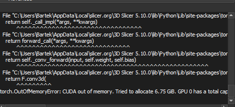 In general I have installed 5.8 version and TotalSegmentator works as new, but in the newest versions after this error everything freezes and I’m able to unfreeze only after terminating python-real in Task Manager.