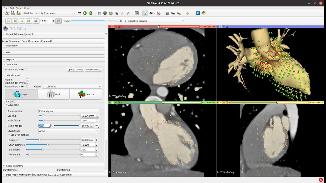 I imported a 4D TAC scan (10 timeframes) in “volume sequence”, I created a segmentation node, segmenting the first timeframe (aorta) and created a new sequence, setting the correct proxy node.